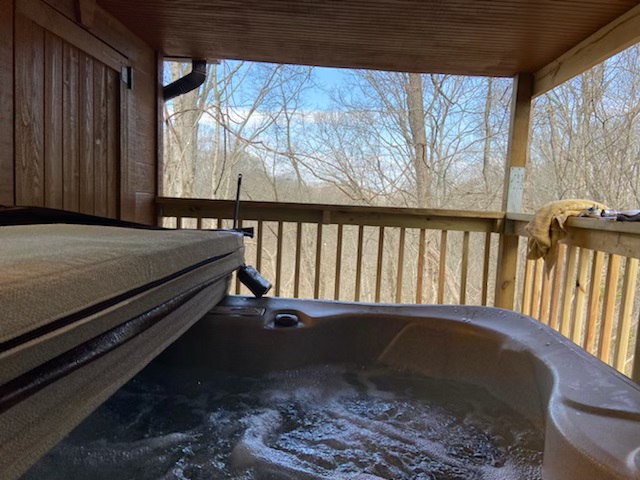 After a day of playing in Sevierville, Pigeon Forge or Gatlinburg, return to Sugar Creek to relax!  The partially enclosed and covered hot tub is waiting for you just outside the door.