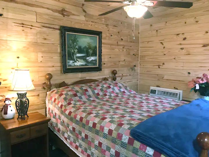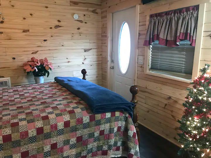 Bed and bath, like a hotel without the expense. Mini fridge, TV, coffee maker & microwave provided, along with other things you might need (hair dryer, hangers & such). This is one of several cabins on the property, so there are other travelers around.
